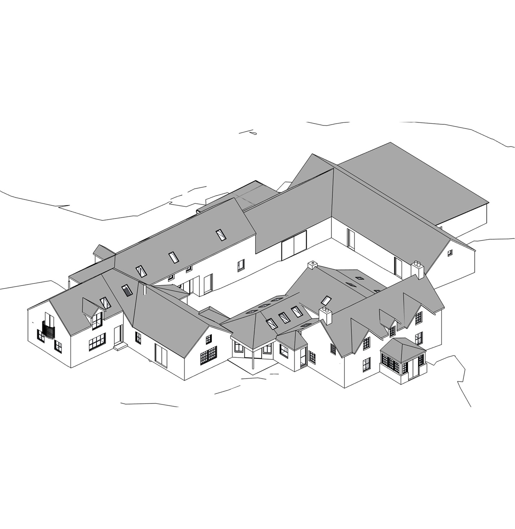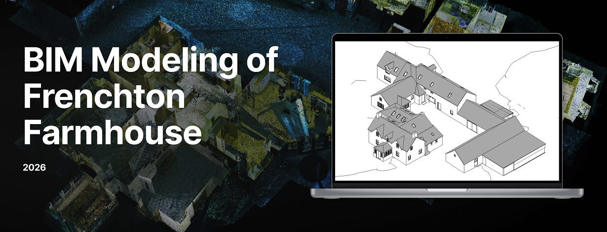 GIS-Point was commissioned to develop a digital BIM model of an existing historic farmhouse based on laser scanning data. The project included point cloud processing and modeling of the building envelope and basic interior layout in Autodesk Revit at LOD 300.