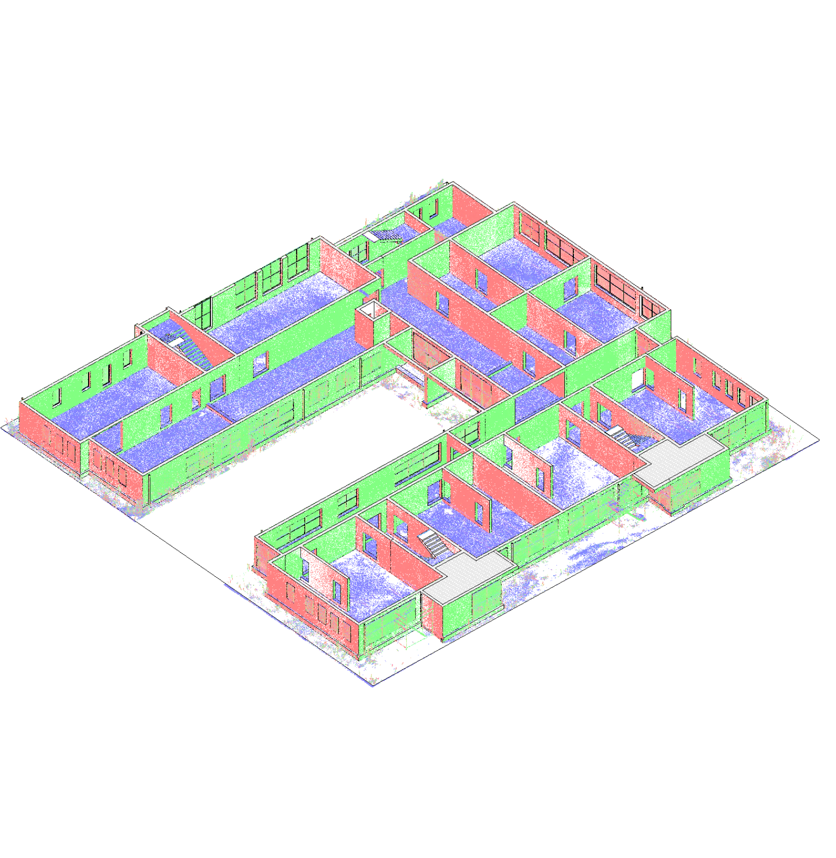 - Analyzing the existing building geometry and developing accurate floor plans and building sections based on the scan data