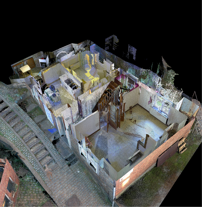 - Dense interior scan data: The interior point cloud contained a large amount of furniture and objects, making it difficult to clearly identify wall boundaries and structural elements.