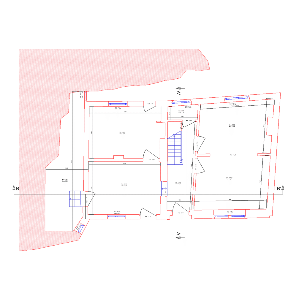 The project involved preparing as-built documentation of an existing building located on a steep rocky terrain. The complexity of the site conditions and the nature of the scan data required careful interpretation of the point cloud and detailed analysis of the building geometry.