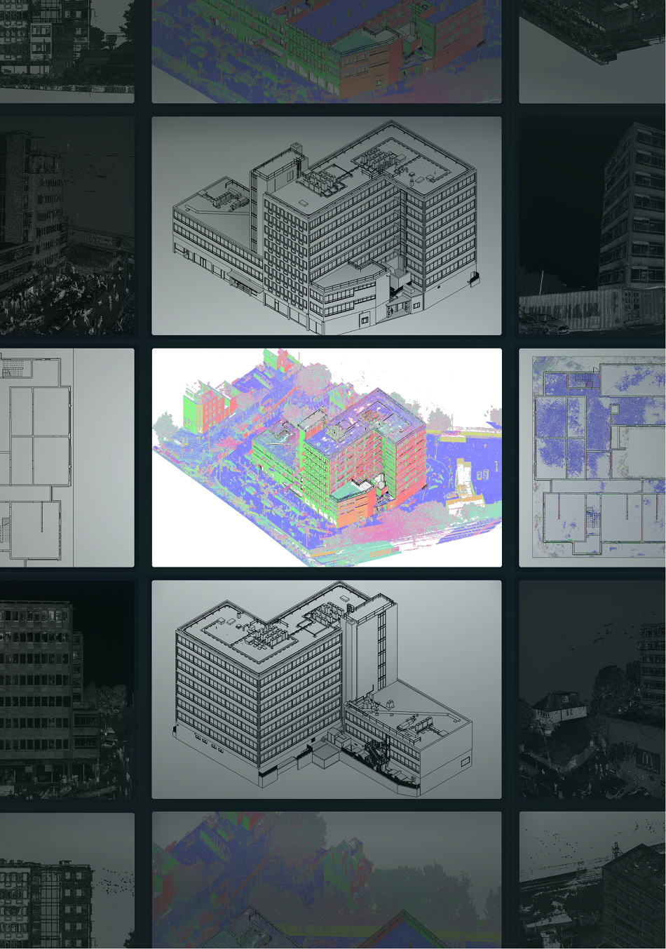 - Modeling visible building services, plant equipment, and external building features based on the scan data.