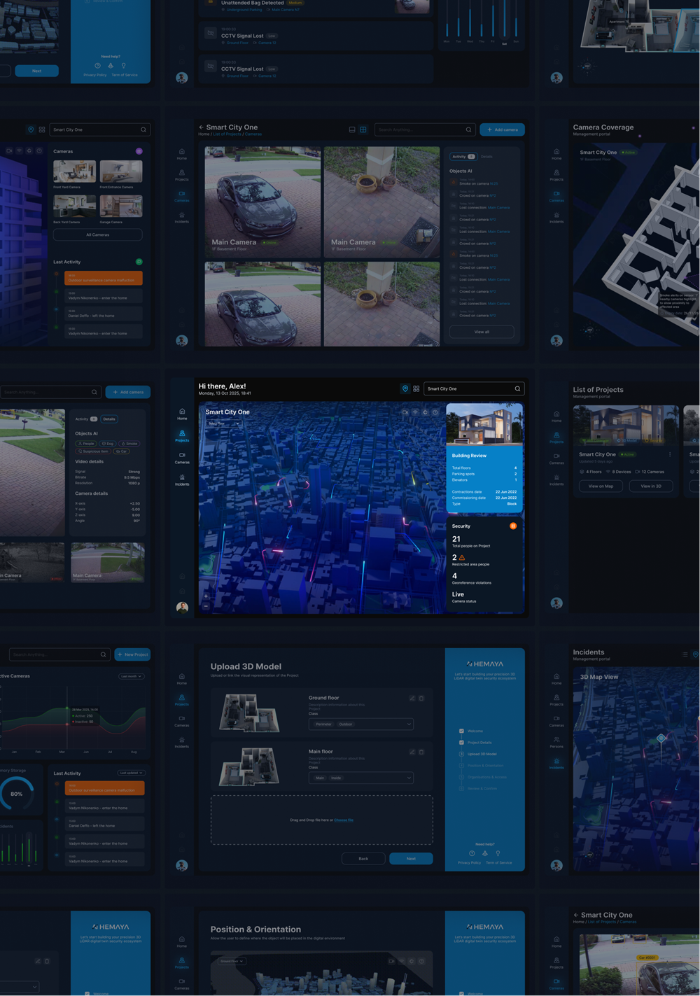 The platform provides real-time visualization of buildings or city districts, enabling operators to detect hazards, monitor people flow, and dynamically plan evacuation routes. AI models analyze sensor data to predict fire risks and simulate evacuation scenarios, helping emergency teams respond faster and more effectively.