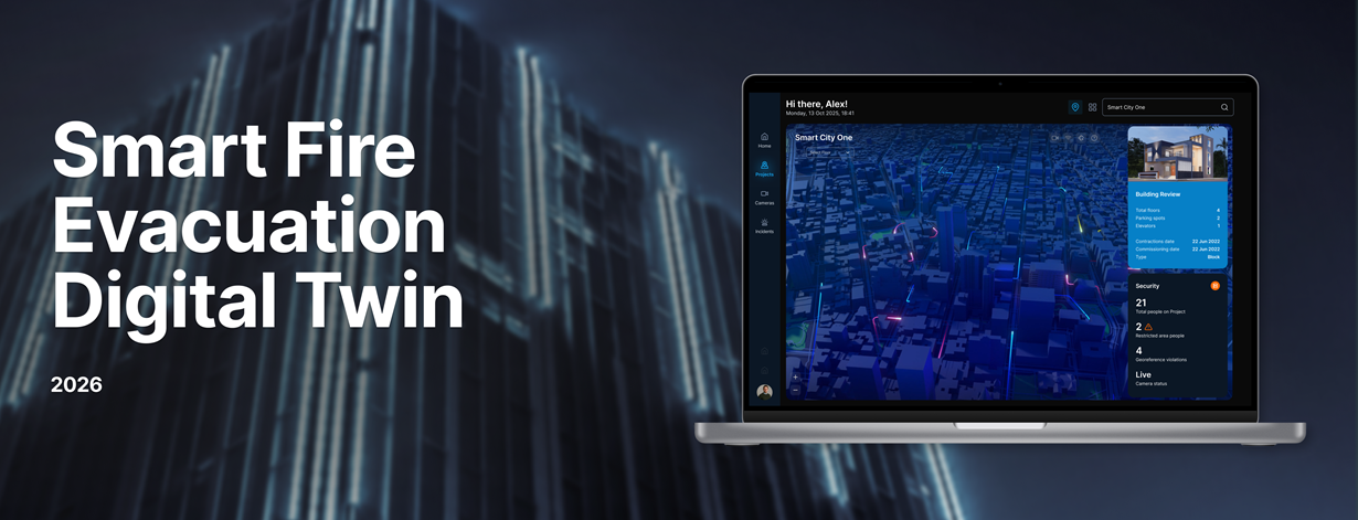 The platform provides real-time visualization of buildings or city districts, enabling operators to detect hazards, monitor people flow, and dynamically plan evacuation routes. AI models analyze sensor data to predict fire risks and simulate evacuation scenarios, helping emergency teams respond faster and more effectively.